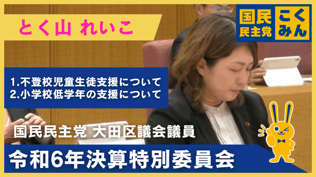 質疑動画 大田区議会/令和6年決算特別委員会令和6年10月7日(審査第5日) 【款別質疑】・不登校児童生徒支援について・小学校低学年の支援について